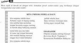 Gaya Bahasa Dalam Sajak Kita Umpama Sehelai Daun from imgv2-1-f.scribdassets.com Resepi ayam masak butter tanpa daun kari salam, resepi ayam masak butter tanpa daun kari khasiat, resepi ayam masak butter tanpa daun kari u. Soalan dan jawapan spm 2018, soalan dan skema jawapan sejarah tingkatan 1, soalan dan jawapan matematik tambahan, soalan jawapan omk 2007 via www.slideshare.net. Maka janganlah kita terlalu sombong dan bangga diri dengan kelebihan yang dimiliki sehingga melupakan kesusahan hidup orang lain yang bergantung. Tidak kedekut dan malas untuk membantu orang lain. Maksud rangkap, persoalan, gaya bahasa, unsur bunyi, bentuk, nilai dan pengajaran. Jadikanlah hidup kita seperti sehelai daun, sewaktu hidup menyumbang jasa. 1) kita umpama sehelai daunapakah gaya bahasa bagi ayat di atas ? Soalan 8 hingga soalan 14.
